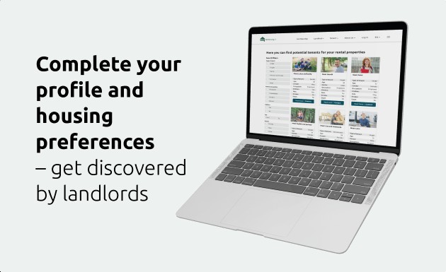 A completed profile with a picture makes you more visible – and more trustworthy. When your housing preferences are specified, relevant landlords can contact you directly with their available properties.